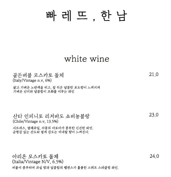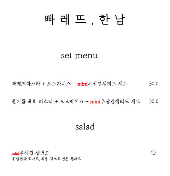 빠레뜨한남은 맛집임에도 불구하고 가격은 그렇게 비싼 편은 아닌 것 같습니다.