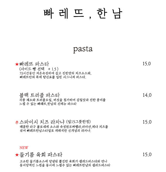 처음에는 들기름 육회 파스타를 시킬까 하다가 그래도 가장 유명한 메뉴인 빠레뜨파스타를 먹어봐야겠다 싶어서