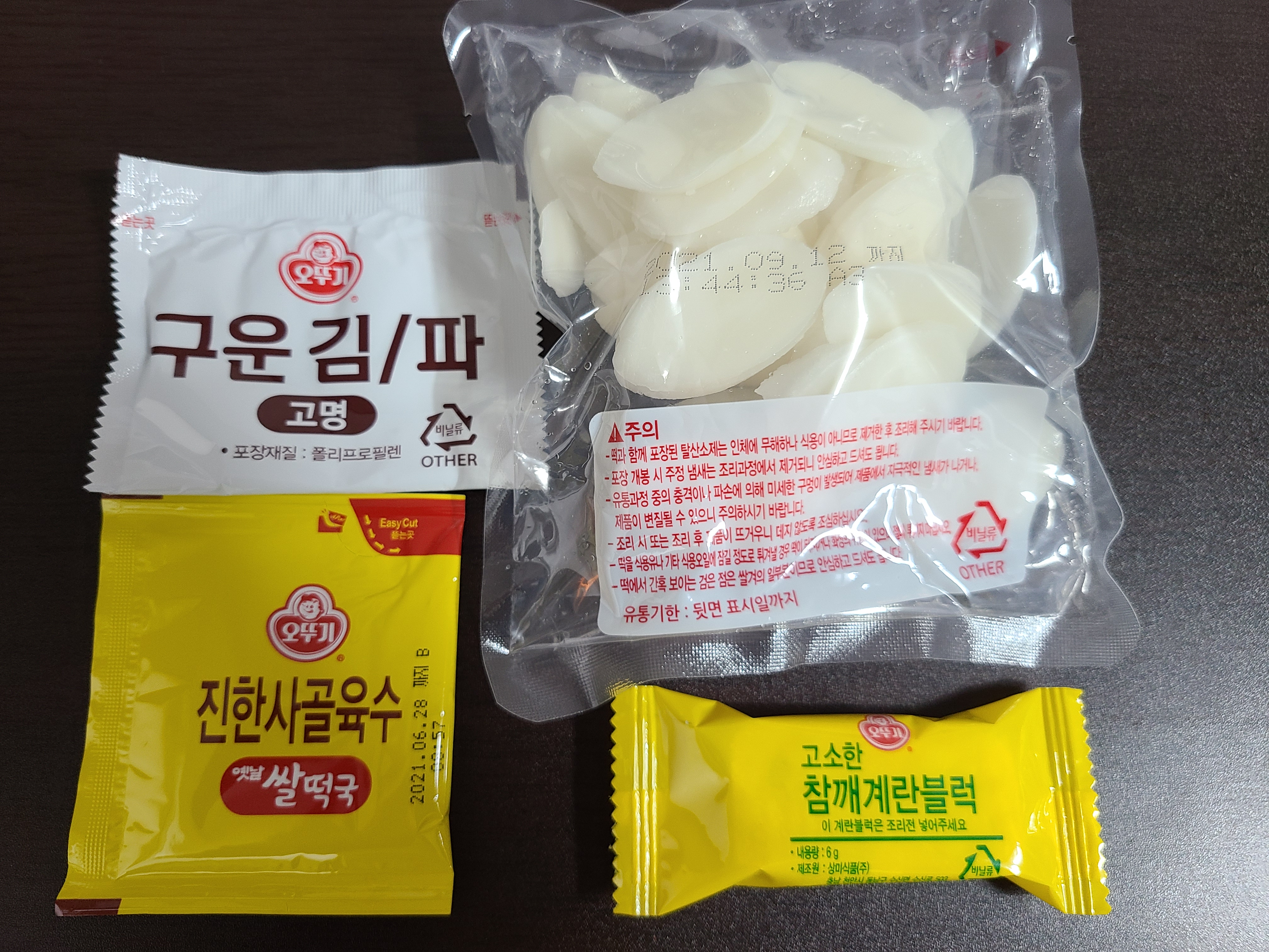 구성품은 간단합니다. 떡, 육수, 계란 블록, 김/파 고명이 끝입니다.