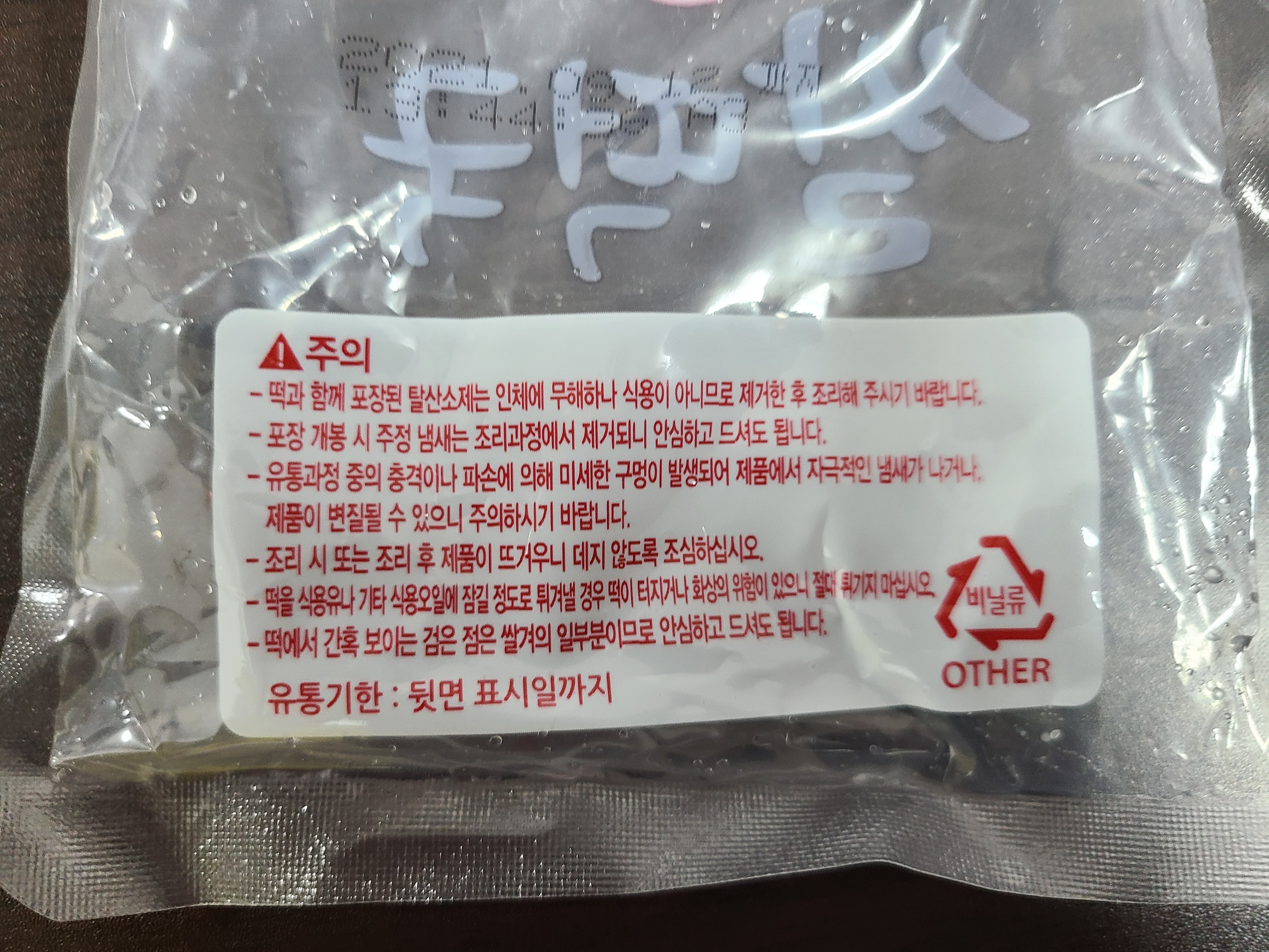 전자레인지에 돌리려고 일단 떡 포장지를 뜯어 부었는데 떡에서 이상한 냄새가 나서 확인해 봤더니