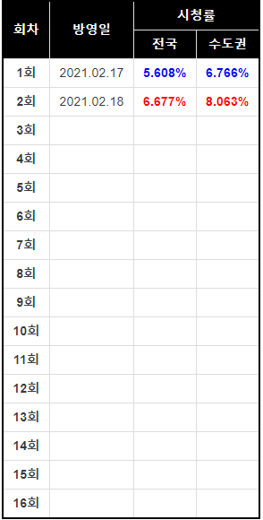 2021년 2월 18일 기준, 역대 JTBC 드라마 첫 방송 중에서 두 번째로 높은 시청률을 기록했다. 1위는 부부의 세계.