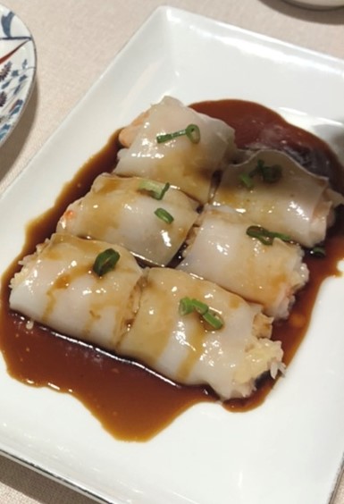 새우 창펀입니다. 다져진 새우를 흐물한 피가 감싸고 있고, 그 위에 간장 베이스 소스가 뿌려집니다.